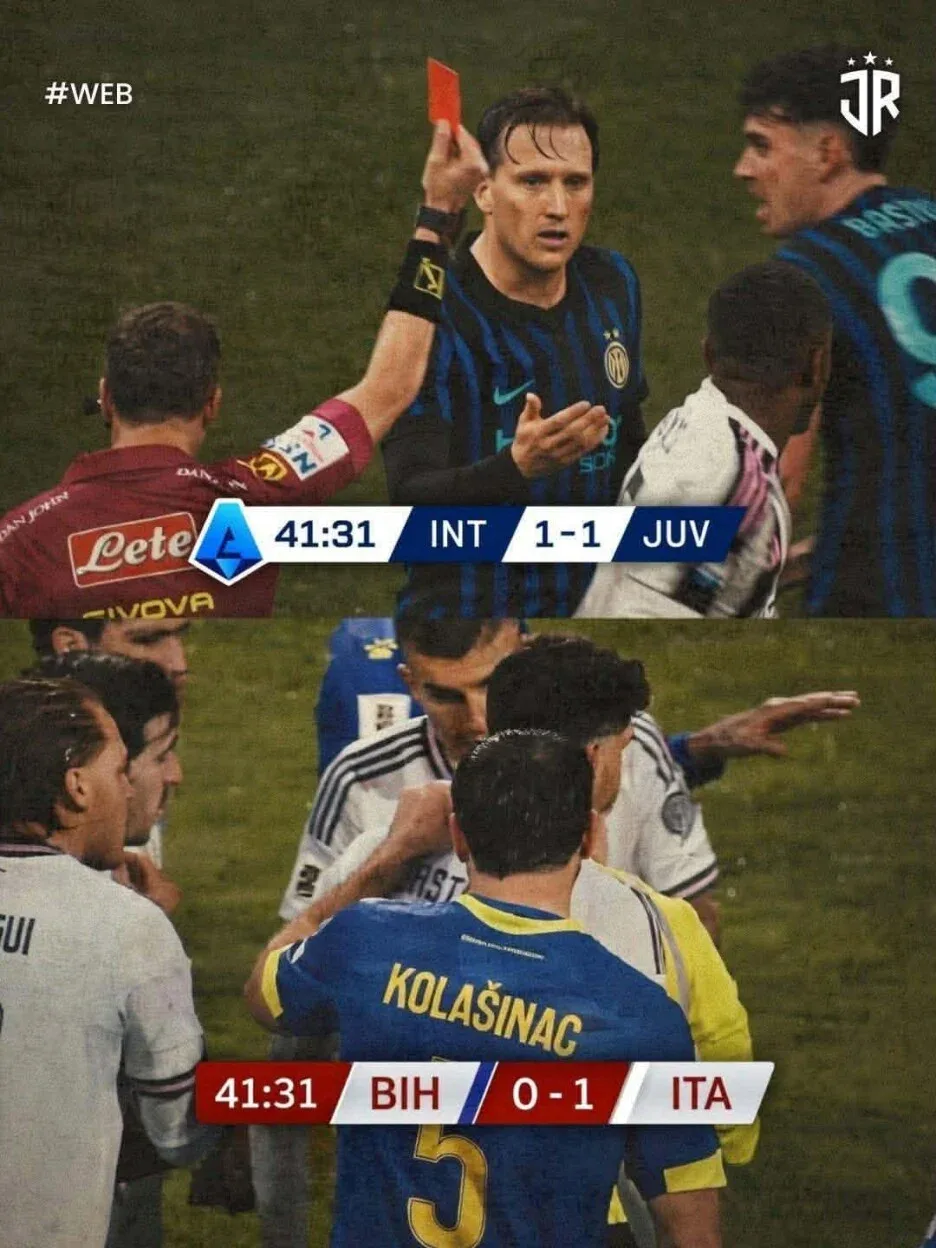 Igrala se 41. minuta kada je Bastoni neoprezno startovao na Amara Memića kako posljednji igrač odbrane. Sudija Turpin nije imao ni sekundu dileme i Italijanu je pokazan direktan crveni karton. Bastoni je pognute glave, svjestan šta je uradio, morao napustiti teren, ostavivši svoju ekipu na cjedilu i postavši u sekundi apsolutni tragičar svoje nacije.