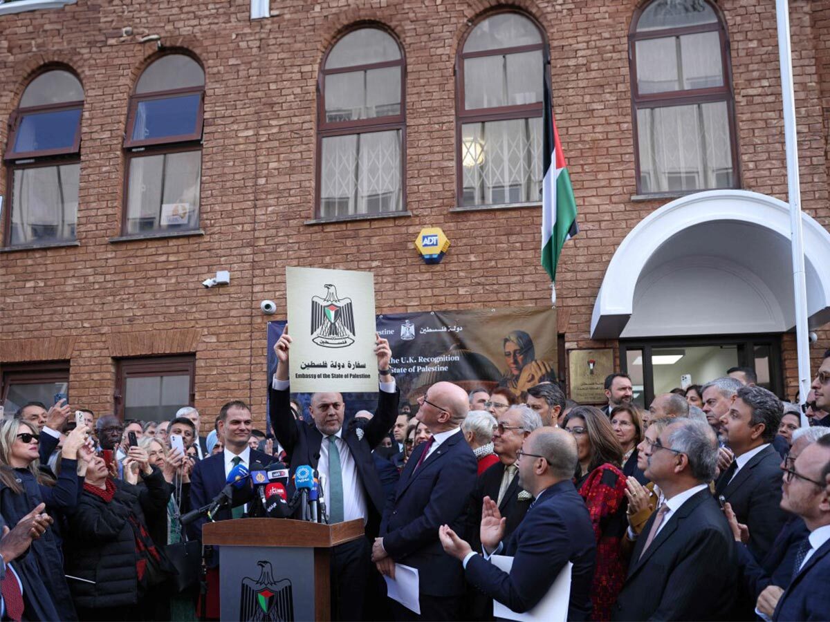 Tokom zvanične ceremonije, palestinski ambasador je otkrio ploču s natpisom "Ambasada Države Palestine", koja je postavljena na fasadi zgrade koja se nalazi u četvrti Hammersmith u zapadnom Londonu, u simboličnoj sceni koja odražava prelazak palestinskog predstavništva iz diplomatske misije u punopravnu ambasadu.