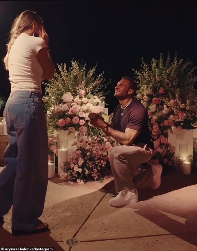 Grand Slam šampionka Aryna Sabalenka zaručila se nakon što joj je partner Georgios Frangulis uručio ogroman dijamantski prsten, dok je sretni par bio okružen cvijećem i svijećama.