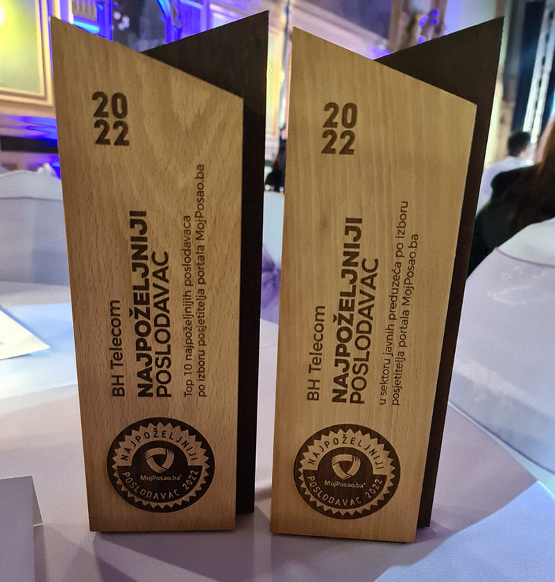 Kompanija BH Telecom je u Domu oružanih snaga BiH u Sarajevu na svečanoj ceremoniji dodjele priznanja "Najpoželjniji poslodavac u BiH za 2022. godinu", koju već 16. put organizuje kompanija Kolektiv d.o.o. (MojPosao.ba), osvojila laskavo prvo mjesto u sektoru javnih kompanija.