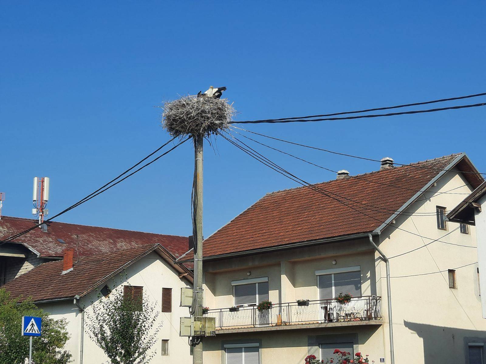 U maloj opštini Oštra Luka na putu Sanski Most -Prijedor, u centru naselja svoj dom je pronašla bijela roda sa svojim mladuncima.