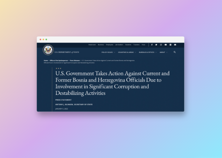 Konkretno, postoje vjerodostojne informacije da je Tegeltija iskoristio svoj položaj da bi ostvario korist u zamjenu za miješanje u sudski proces i manipulisanje imenovanjima na pravosudne funkcije, te zapošljavanjem na druge javne pozicije", naveo je State Department u svojoj odluci.