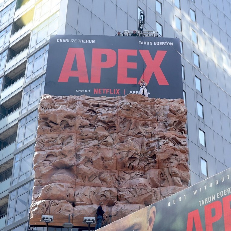 Pedesetogodišnja glumica iznenadila je prolaznike u petak popevši se na bilbord na Times Squareu u New Yorku u punoj opremi za penjanje kako bi promovirala akcioni triler "Apex". Publika je posmatrala kako se zvijezda penje na vrh, odakle se trijumfalno osvrće oko sebe. Na impresivan način je pokazala svoje novostečene vještine, koje je stekla za film, izvještava People.