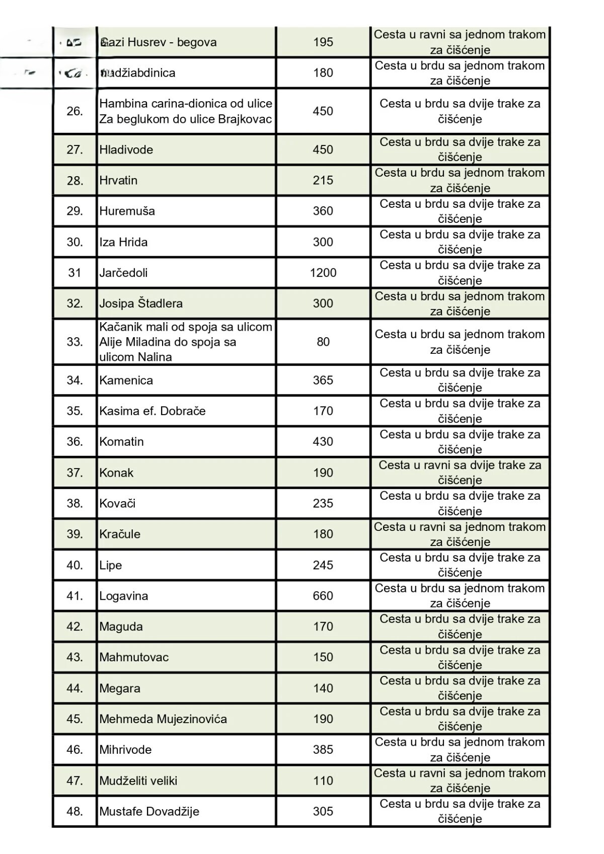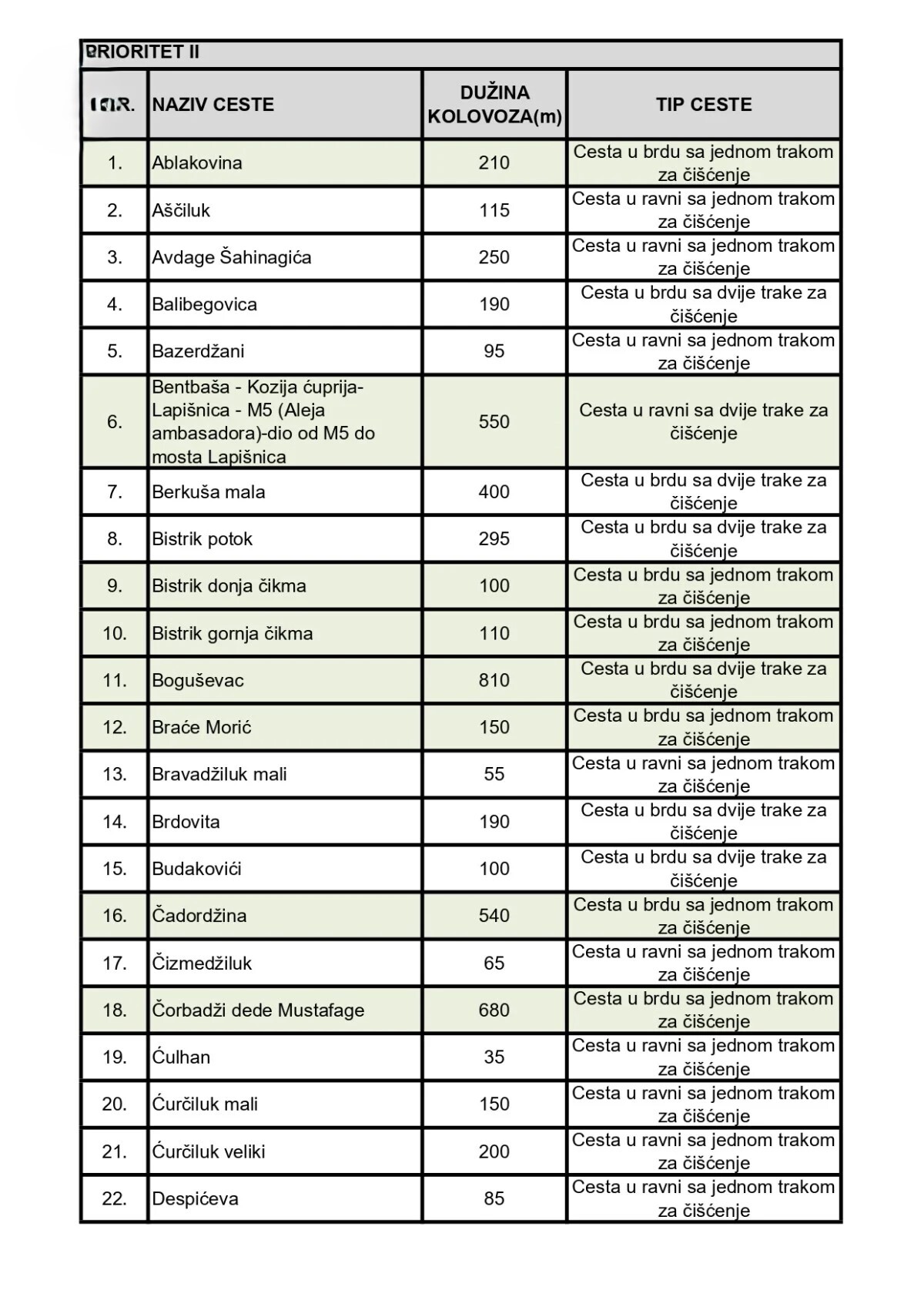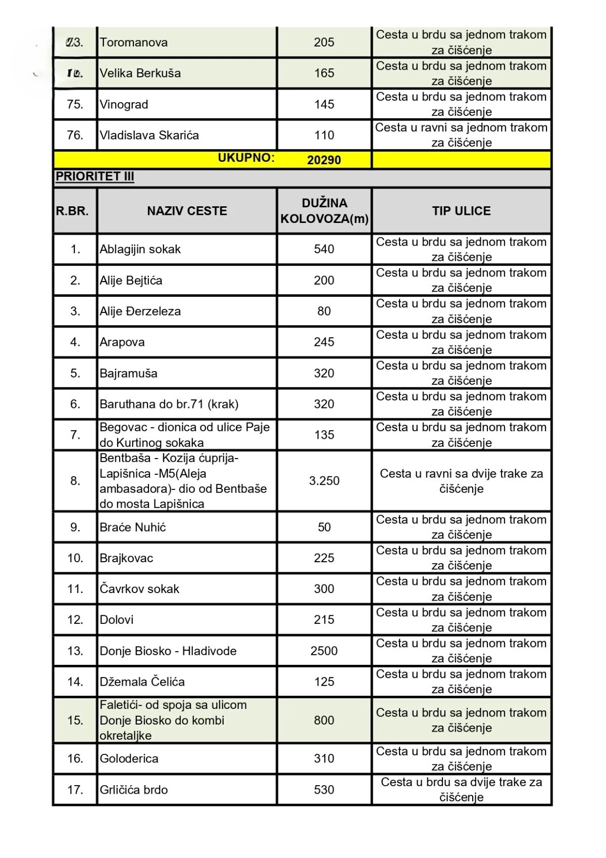 U fotogaleriji donosimo pregled ulica, njihovu dužinu i oznaku prioriteta prema utvrđenom planu komunalnog preduzeća Rad.