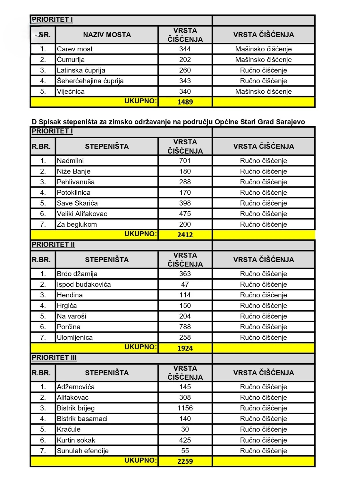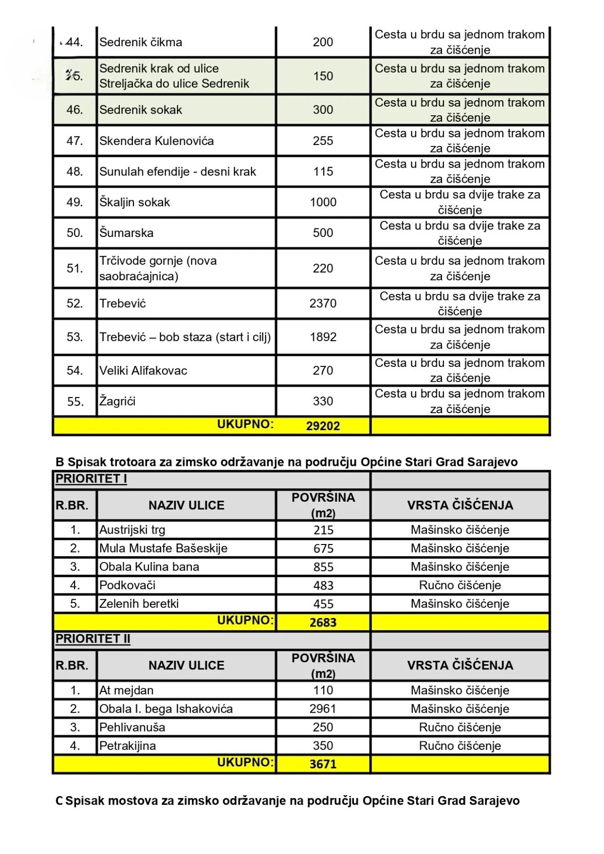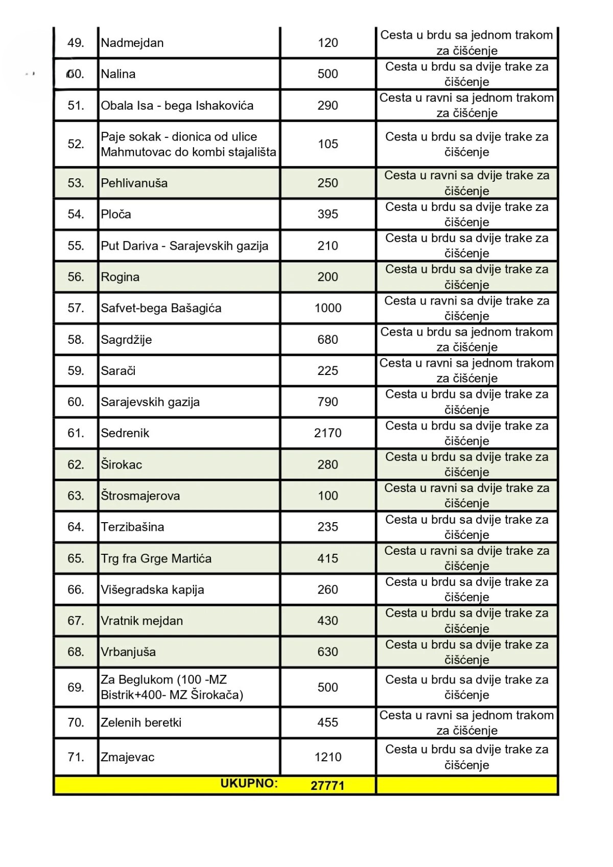 U fotogaleriji donosimo pregled ulica, njihovu dužinu i oznaku prioriteta prema utvrđenom planu komunalnog preduzeća Rad.