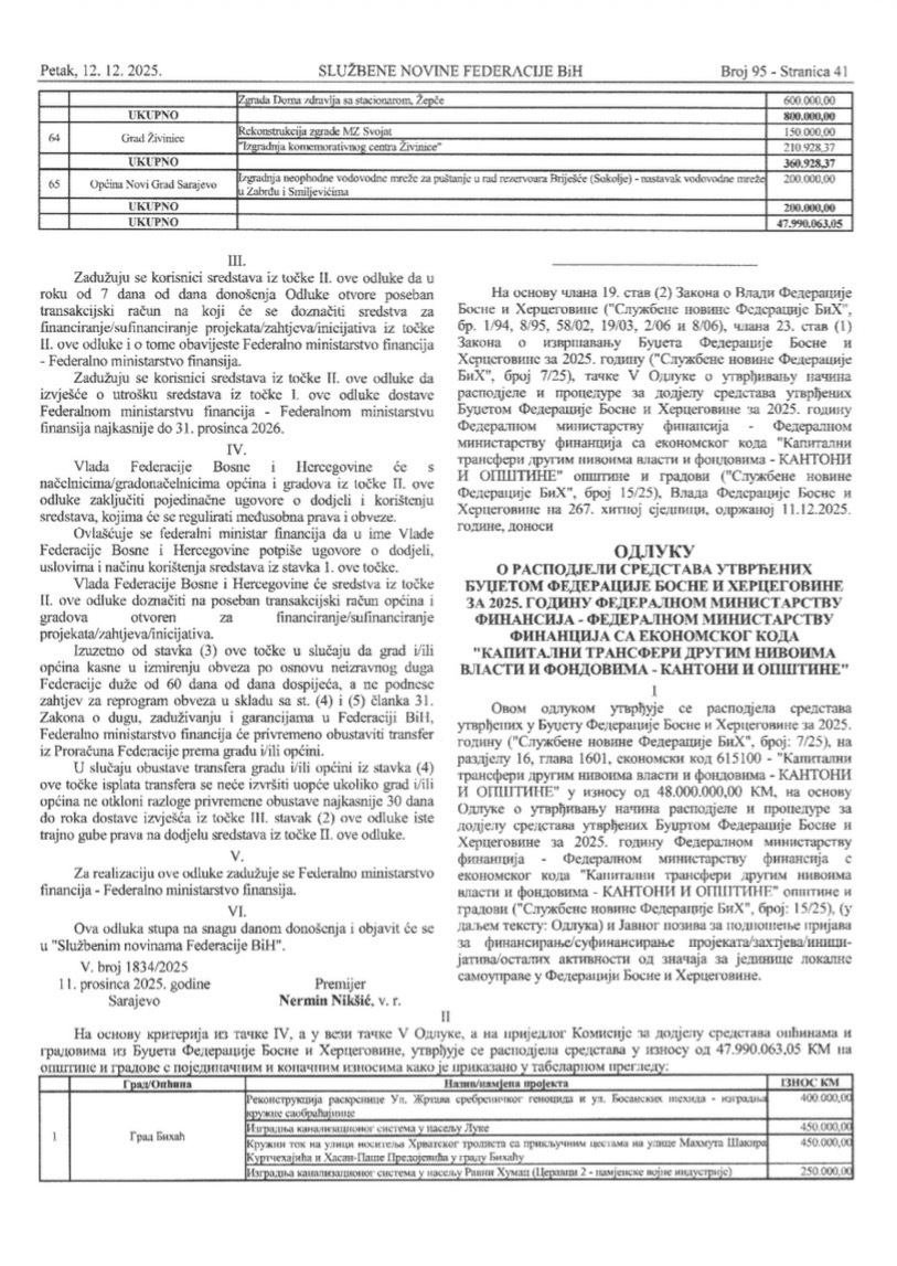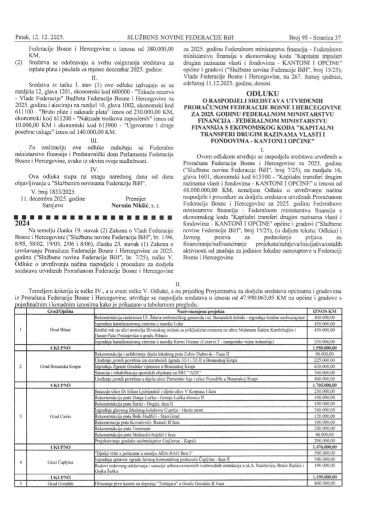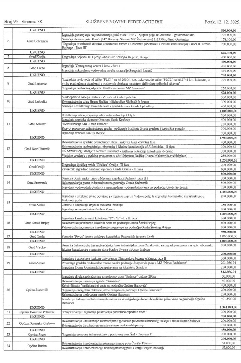 Dok Vlada Federacije BiH ponosno objavljuje da je raspodijelila 48 miliona KM za 65 općina i gradova u 2025. godini, Grad Gradačac ostaje na potpunoj margini – bez ijednog feninga.