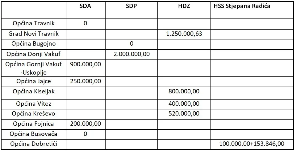 Istovremeno, općina Donji Vakuf, gdje je na čelu lokalne vlasti kadar SDP-a, dobila je dva miliona KM, što je dodatno otvorilo pitanje kriterija i političkog uticaja u raspodjeli novca.