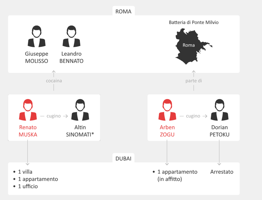 Nisu samo ljudi koji, poput Matošija, čekaju ekstradiciju, ti koji posluju u Dubaiju. To je slučaj i sa Arbenom Zoguom, poznatim kao "Ricky" ili "Riccardino", rođenim u Lezhi, na sjevernoj obali Albanije. Smatra se jednim od pionira albanskog kriminala u Rimu, prvim vođom takozvane "baterije Ponte Milvio", koja je trgovala drogom u ime narko-ultra Fabrizija "Diabolika" Piscitellija.