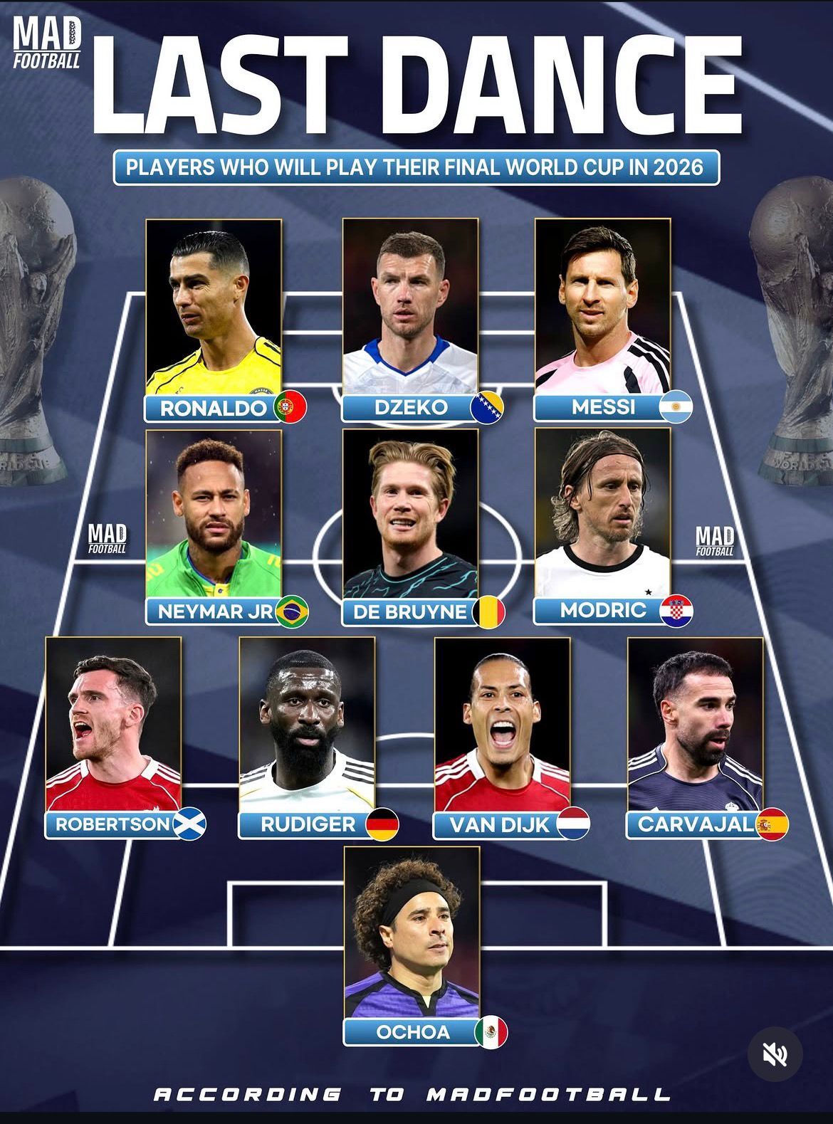 Ovo će biti posljednje svjetsko prvenstvo i za Brazilca Neymara Jr. koji je nagovijestio da bi mu turnir 2026. mogao biti posljednji u karijeri, jer nije siguran u svoju budućnost u nacionalnom timu nakon toga.