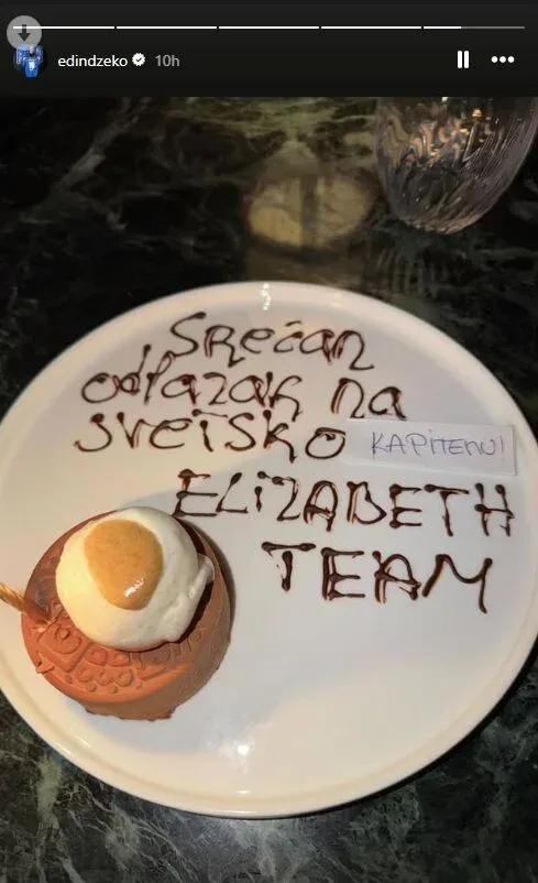 Džeko je bio oduševljen ovim lijepim gestom, te ga je objelodanio na svom zvaničnom Instagram profilu. Podijelio je fotografiju deserta uz oznaku restorana, a oni su njegov "story" naknadno podijelili i na svojoj stranici.