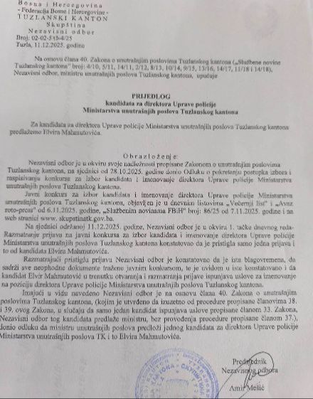 Nezavisni odbor Skupštine Tuzlanskog kantona uputio je prijedlog ministru unutrašnjih poslova TK da Elvir Mahmutović preuzme funkciju direktora Uprave policije Ministarstva unutrašnjih poslova Tuzlanskog kantona.