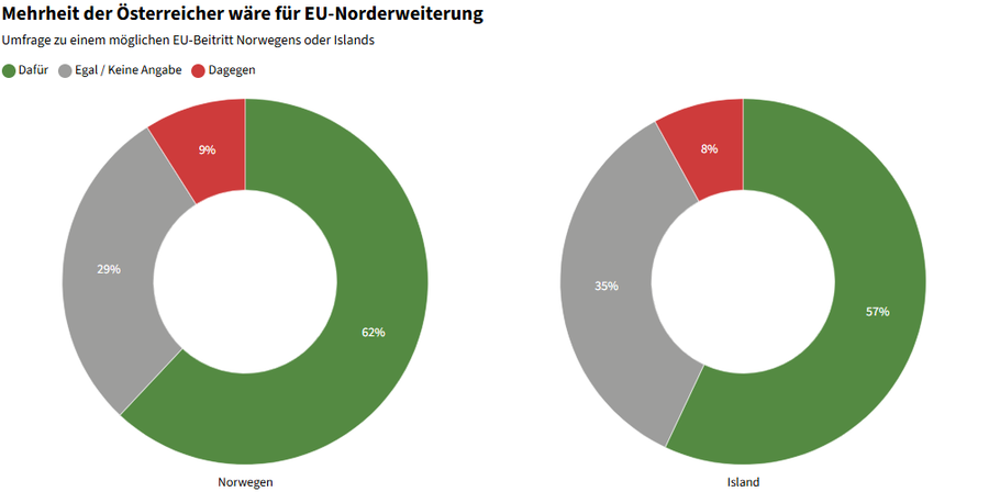 Međutim, čak i u skeptičnoj Austriji postoji podrška proširenju EU u određenim slučajevima. Istraživanje koje je nedavno objavilo Austrijsko udruženje za evropsku politiku pokazuje vrlo visoke rezultate za dvije zemlje: 62% ispitanika podržava članstvo Norveške, dok je 57% za prijem Islanda. U Njemačkoj se očekuju slični rezultati.