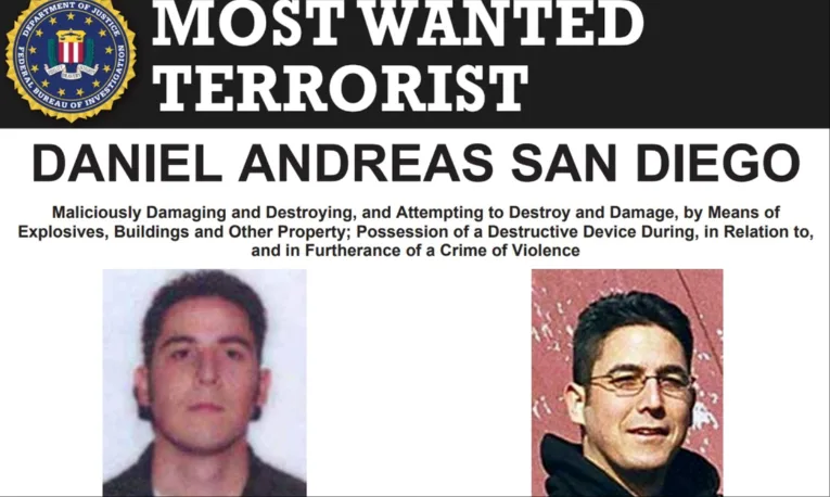 Daniel Andreas San Diego (47) navodno je izveo dva bombaška napada u području San Francisca 2003. godine, za koje je odgovornost preuzela grupa za prava životinja