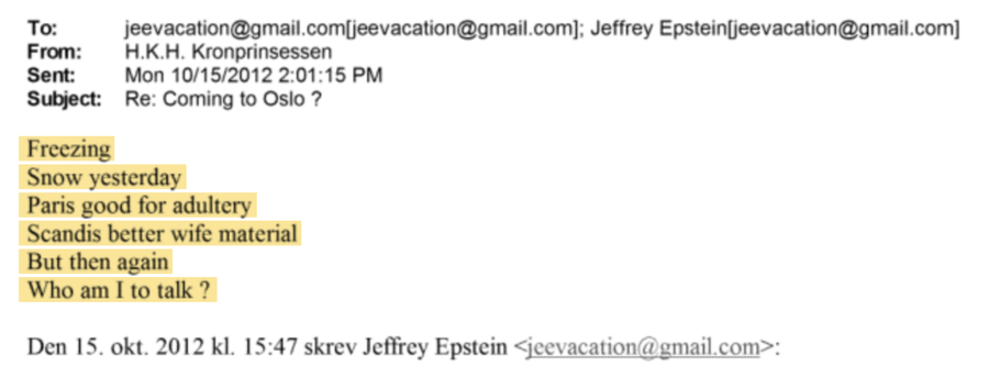 „Dođite i spasite me. Umirem od dosade“, napisala je norveška princeza Mette-Marit u razmjeni e-pošte 2012. godine.
