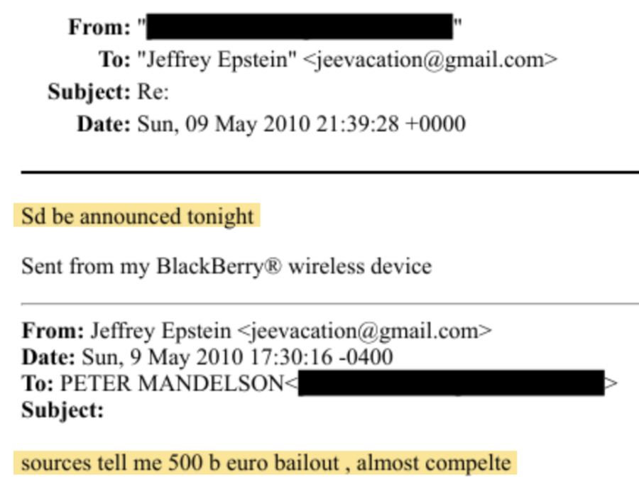 Metropolitanska policija pokrenula je krivičnu istragu protiv Lorda Mandelsona nakon optužbi da je Epsteinu dao osjetljive tržišne informacije. Godine 2009., godinu dana nakon što se Epstein izjasnio krivim za nagovaranje maloljetnica na prostituciju, da Silva je poslao e-mail tražeći "bilo šta što možete učiniti da mi pomognete". Epstein je odgovorio: "Odmah ću vam prebaciti iznos kredita."