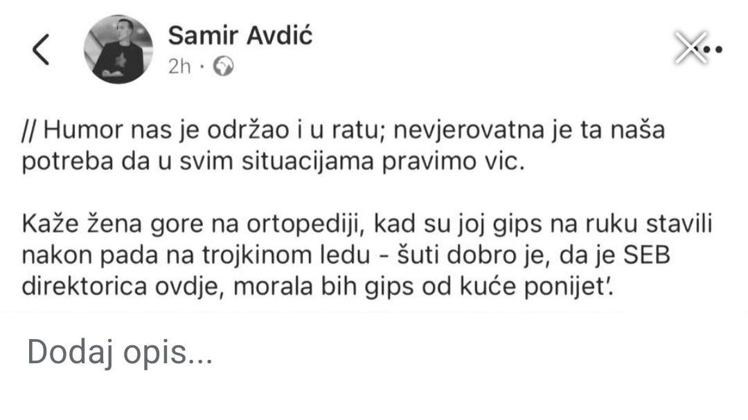 Sve je počelo Avdićevom Facebook objavom u kojoj je pokušao komentarisati stanje u zdravstvu “humorom”, ali njegov ironični ton direktno je ciljao Sebiju Izetbegović. U objavi je, komentarišući pacijenticu u ortopediji, sugerisao da bi žena morala donijeti gips od kuće da je Izetbegović direktorica, što je izazvalo buru reakcija.