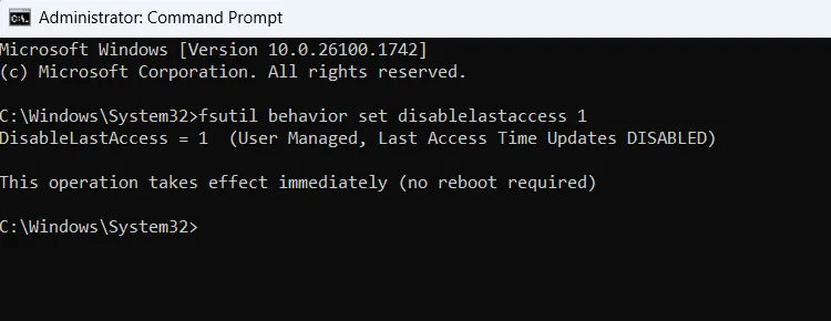 Ponašanje fsutil-a postavljeno na disablelastaccess 1