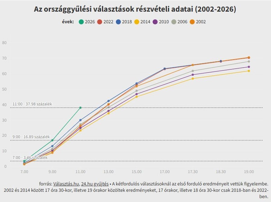 Mađari izlaze na birališta na izborima koji bi mogli okončati 16-godišnju vladavinu premijera Viktora Orbana. Vođa opozicije Peter Magyar pojavio se kao najveća prijetnja Orbanovoj moći. U poređenju sa 25,77 posto prije četiri godine, do 11:00 sati na parlamentarnim izborima učestvovalo je 37,98 posto.