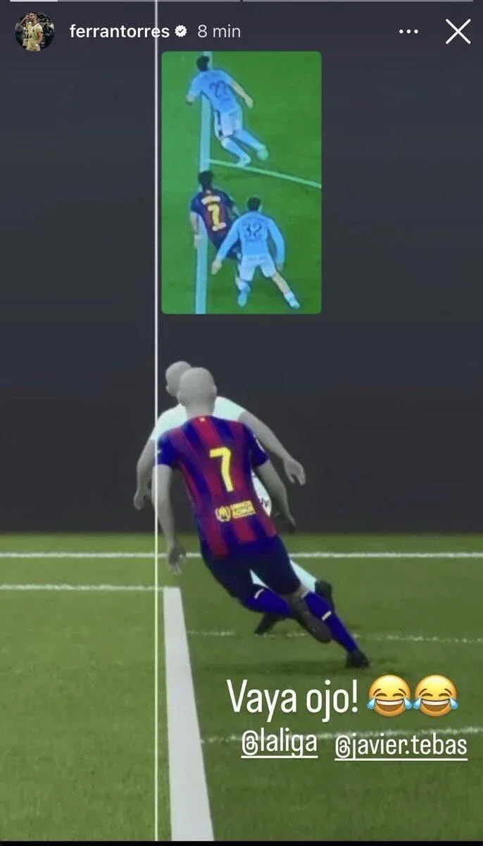 Oglasio se i sam Ferran koji je na društvenim mrežama podijelio fotografije navodne nedozvoljene pozicije i prozvao čelnike Primere kao i prvog čovjeka La Lige Javiera Tebasa koji je prije nekoliko dana izjavio kako trka za prvaka još nije gotova iako Barcelona ima devet bodova prednosti.