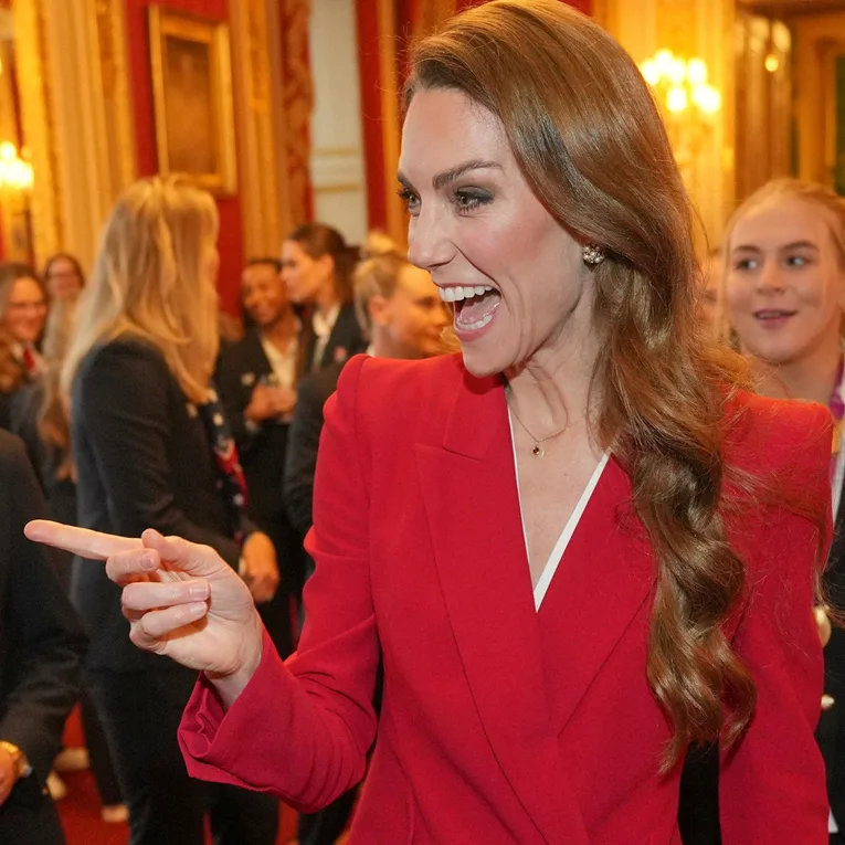 Za sportski događaj, Kate je nosila crveno odijelo, bijelu bluzu i crvene štikle. Tokom susreta s ragbijašima, potvrdila je da često igra ragbi kod kuće sa svojom djecom. O svom najstarijem sinu dodala je: "Ne želim da me George obori!"