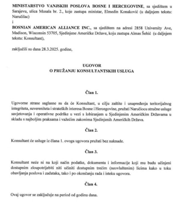 Još u jesen prošle godine došlo je do tihog, ali značajnog obrata u pokušaju lobiranja Bosne i Hercegovine u Sjedinjenim Američkim Državama. Mirza Pilaković, jedan od dvojice angažovanih posrednika Ministarstva vanjskih poslova BiH, formalno je prekinuo saradnju i povukao se iz organizacije Bosnian American Alliance.