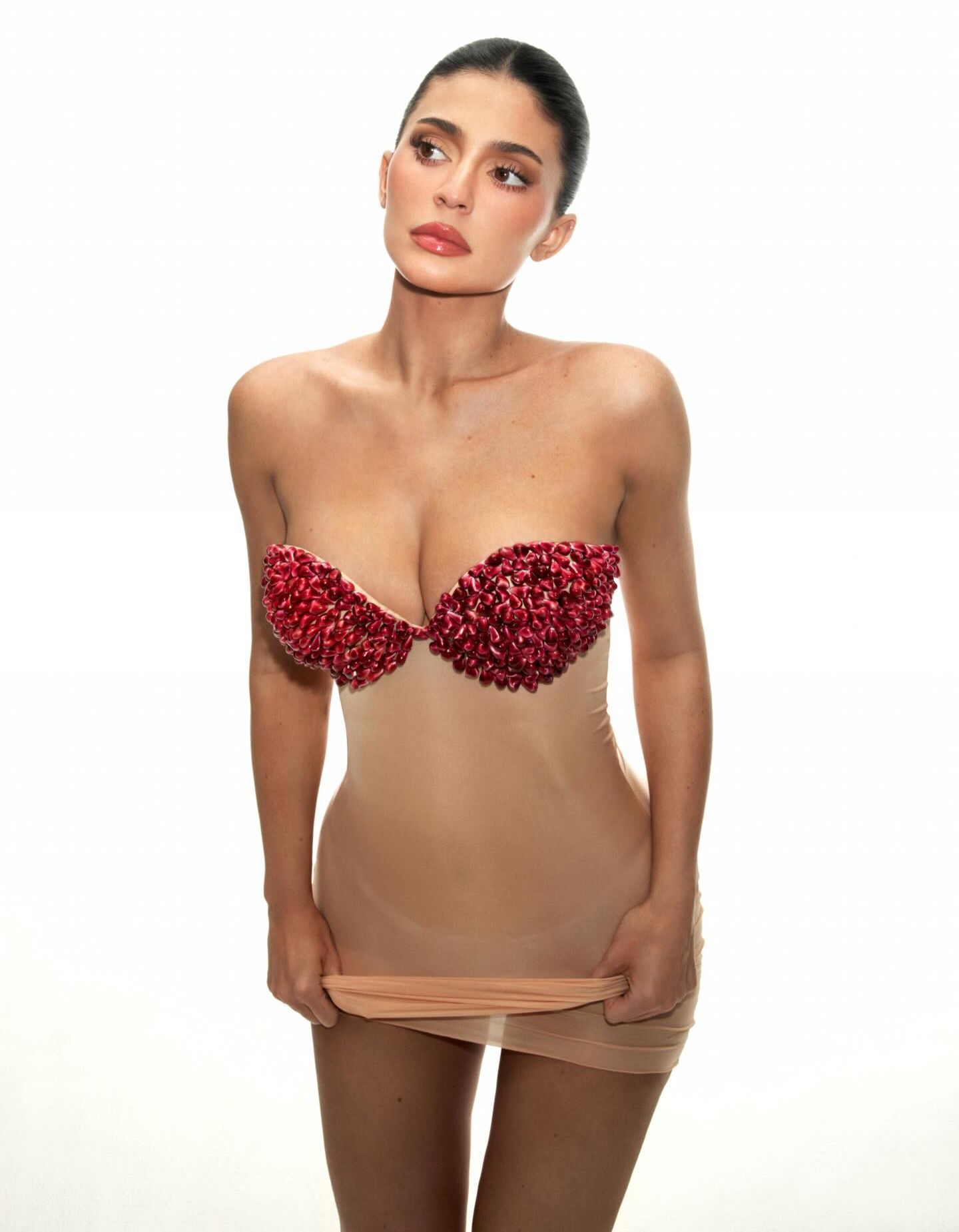 Za fotografisanje, 28-godišnja Kajli pozirala je u prozirnoj mini haljini sa grudnjakom napravljenim od sjemenki nara.
