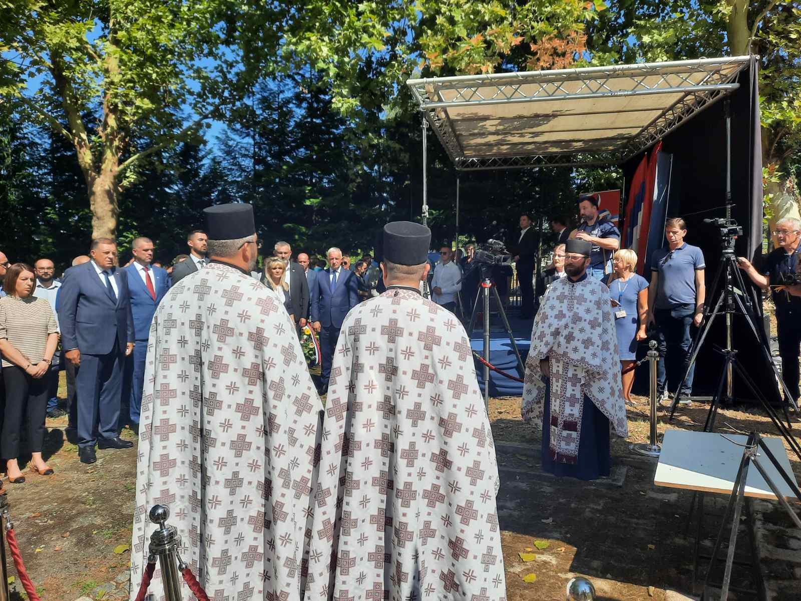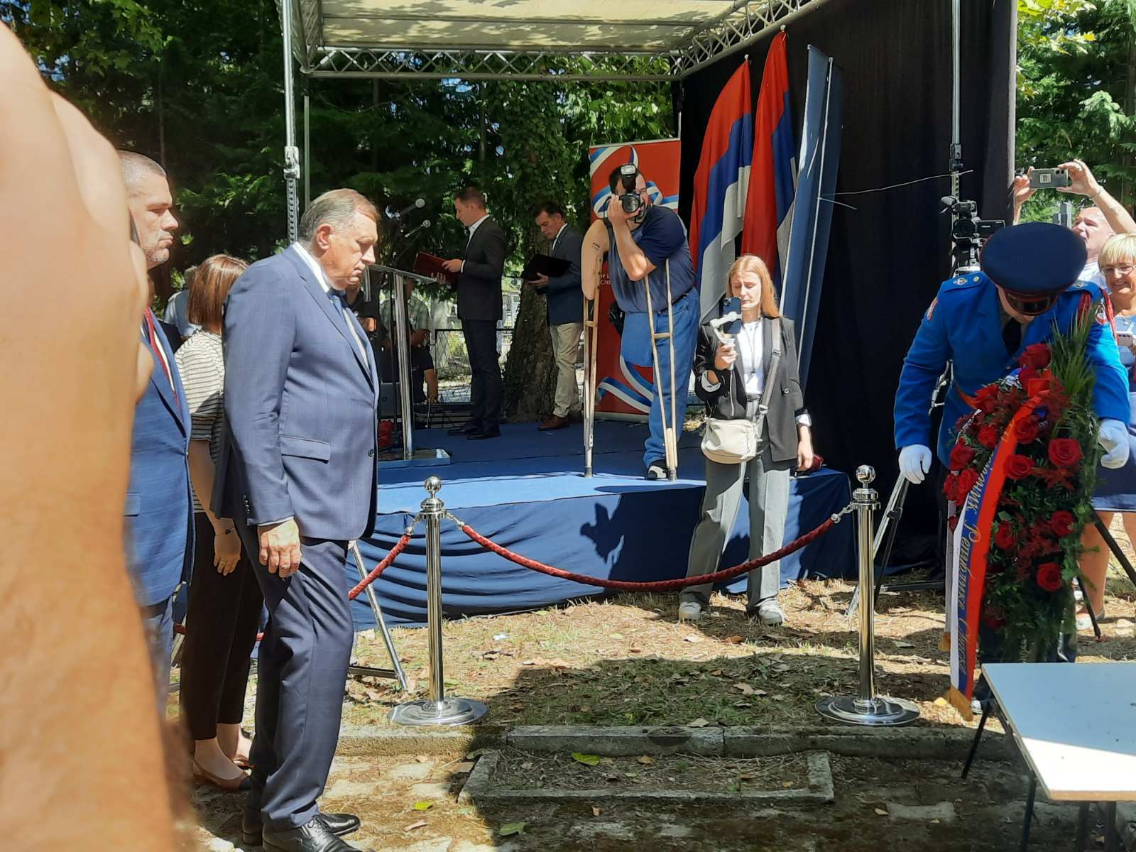 Prije službenih obraćanja ,a pored zamjenika predsjednika opštine Oštra Luka Duška Došenovića, govorio je još Milorad Dodik, oko 15 minuta, predsjednik entiteta je položio vijenac pred betonski krst poklonivši se žrtvama Nezavisne države Hrvatske.