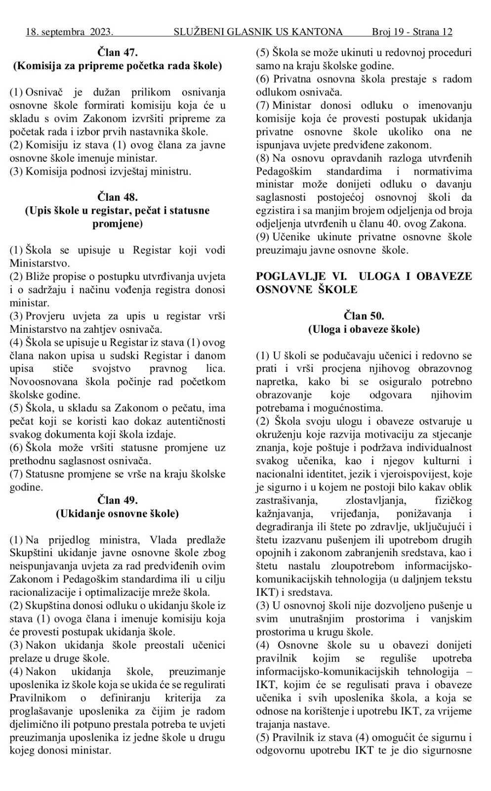 Da ne bude zabune i kantonalni Zakon o predškolskom i školskom obrazovanju USK iz 2023. godine u u članu 50. stav 3 takođe zabranjuje pušenje u unutrašnjim i vanjskim prostorima škole.