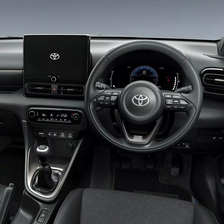 Unutrašnjost donosi glavnu novinu, 10,5-inčni infotainment ekran, koji je u Evropi dostupan od osvježenja iz 2023. godine. Osnovnije verzije dobijaju 8-inčni ekran, dok je prethodni 7-inčni potpuno uklonjen iz ponude. Podsjetimo, Yaris na našem tržištu ima 9-inčni ekran kao standardnu opremu.
