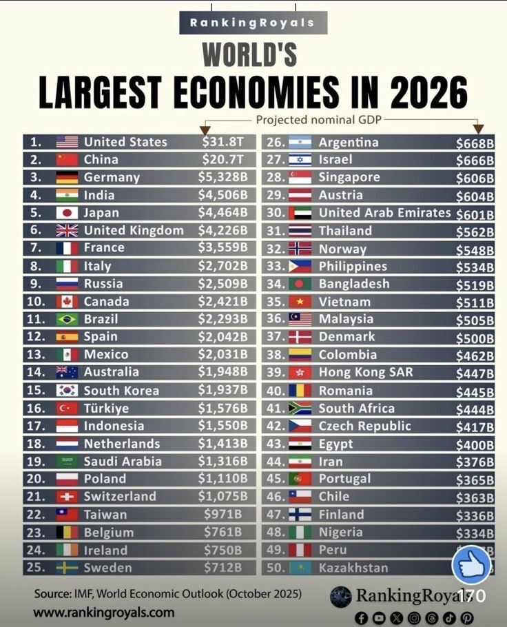 Pogled niže na listi otkriva prava iznenađenja. Vijetnam, Bangladeš i Filipini prelaze prag od 500 milijardi dolara BDP-a. Ove zemlje se sve više integrišu u globalne lance snabdijevanja. One tiho preuzimaju proizvodne kapacitete, trgovinske tokove i strane investicije koje su ranije bile koncentrisane u Kini.