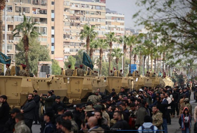 Ulicama Damaska defilovali su danas na vojnoj paradi ešaloni nove sirijske vojske i sigurnosnih snaga sa novim zastavama i uniformama vojske koja je zbacila režim Bashara al-Assada.