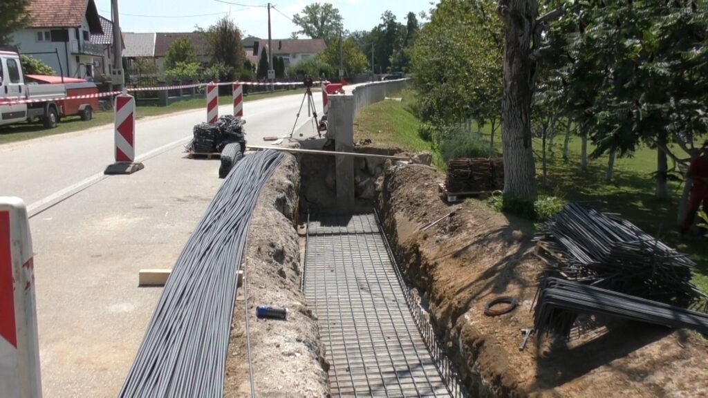 Nastavljeni su radova na izgradnji zaštitnog zida na desnoj obali rijeke Sane, u neposrednoj blizini naselja Jezernice.