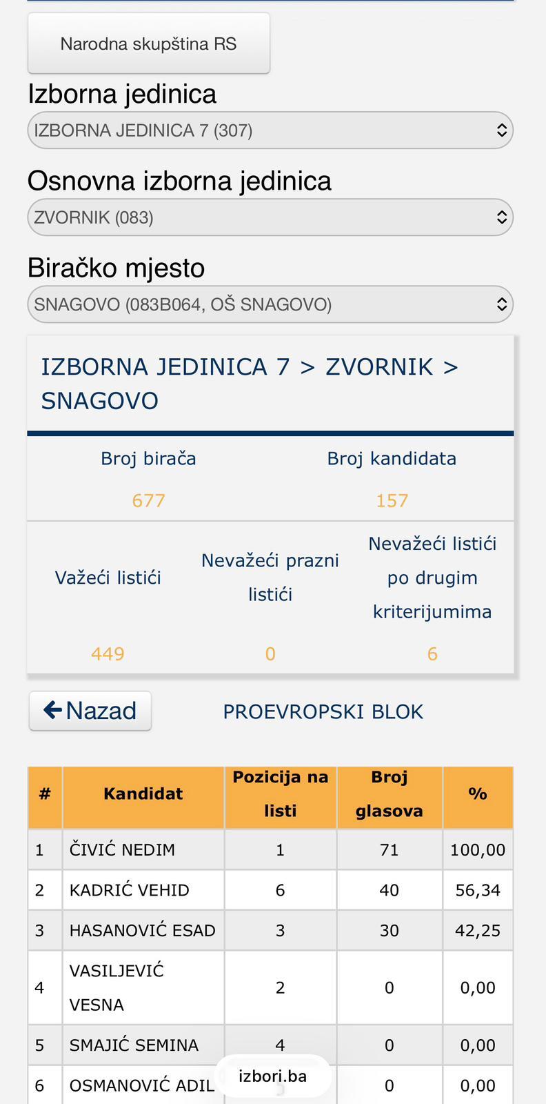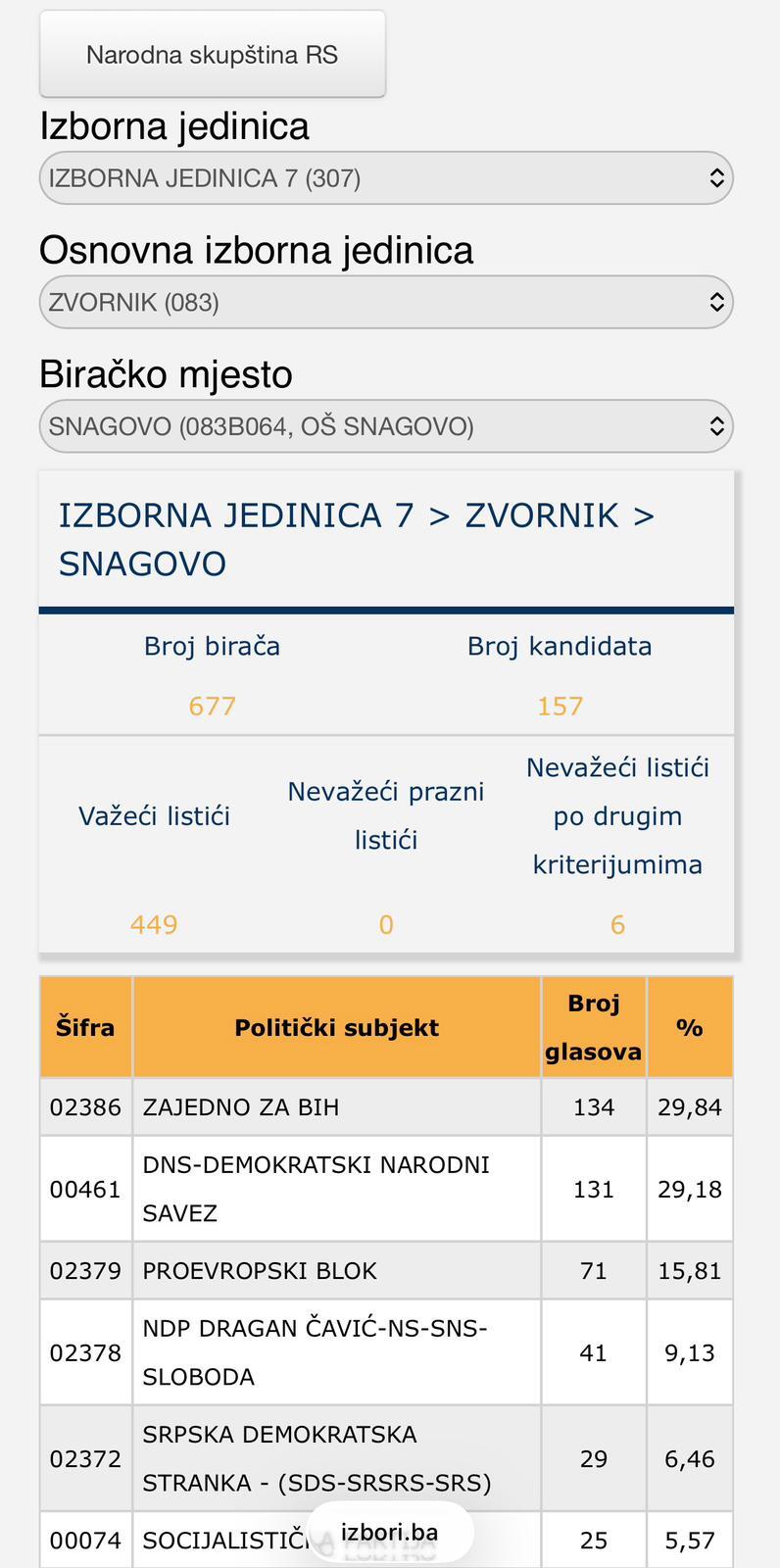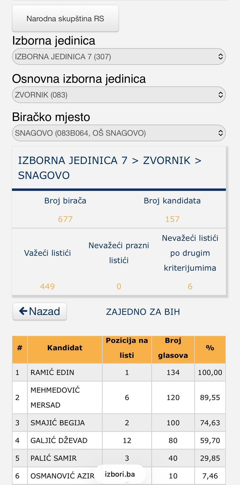 Posebnu težinu imaju rezultati sa biračkog mjesta Snagovo, koje se smatra matičnom sredinom Nedima Čivića. Upravo tu, lista ZAJEDNO ZA BiH ostvarila je najbolji rezultat, dok je Proevropski blok završio znatno iza. Matrično biračko mjesto je test stvarne političke snage – i Snagovo je taj test učinilo jasnim: Ramićeva politika uživa veću podršku, čak i tamo gdje se očekivalo da Čivić dominira. Takav rezultat nije slučajan.