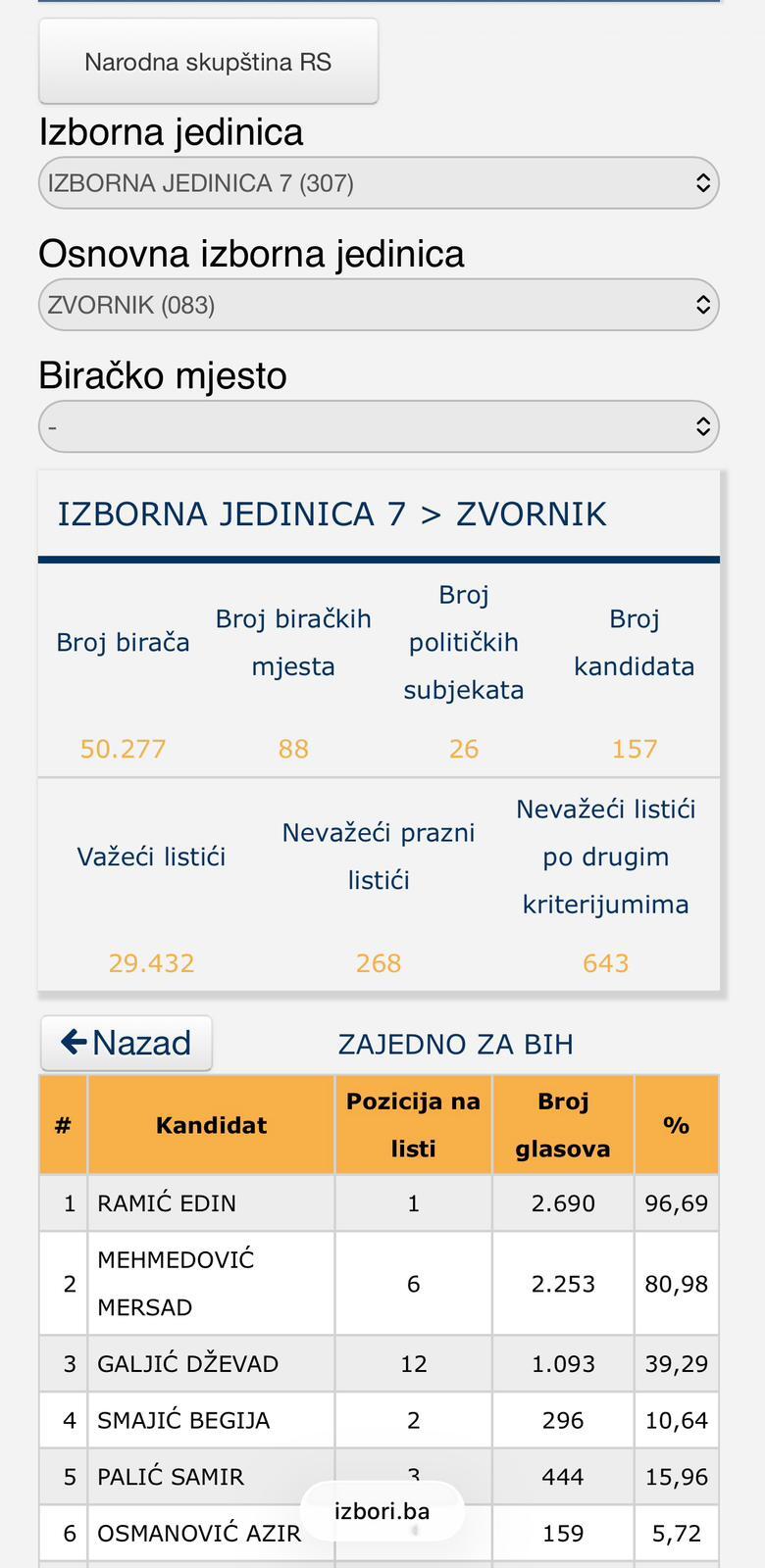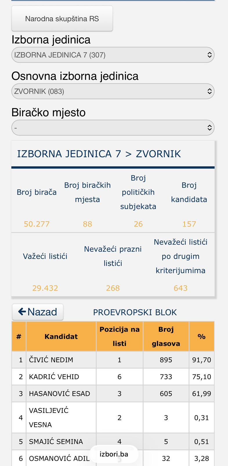 U Zvorniku, listu ZAJEDNO ZA BiH, čiji je nosilac bio Edin Ramić, podržalo je 2.782 birača, dok je Proevropski blok, na čijoj listi je bio Nedim Čivić, osvojio 976 glasova. Još je upečatljiviji odnos preferencijalnih glasova – Ramić je dobio 2.690 glasova, što znači da je gotovo svaki birač liste prepoznao njegovo ime i povjerenje mu poklonio lično. Takvi rezultati ne govore samo o stranačkoj snazi, već i o ličnoj prepoznatljivosti i kredibilitetu kod građana.