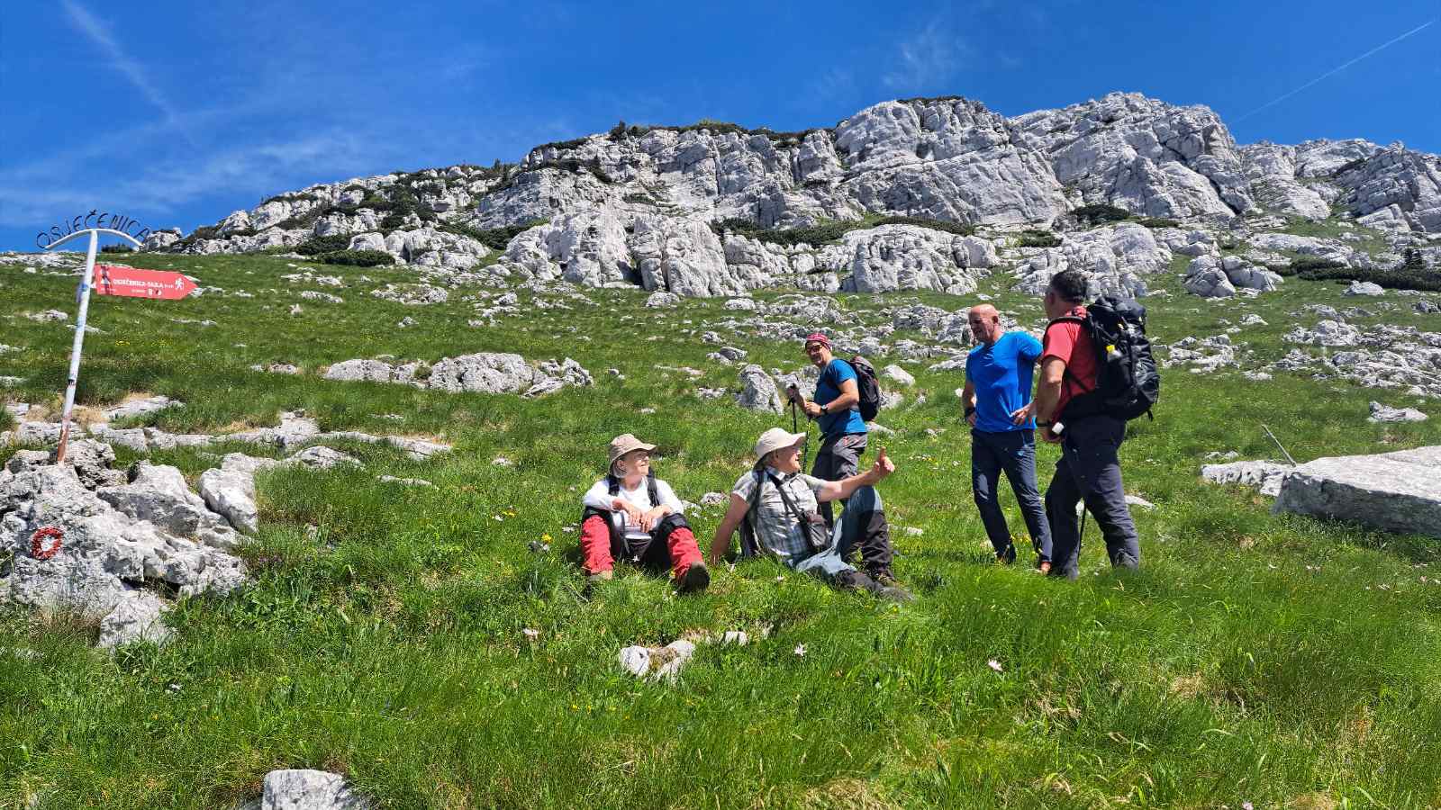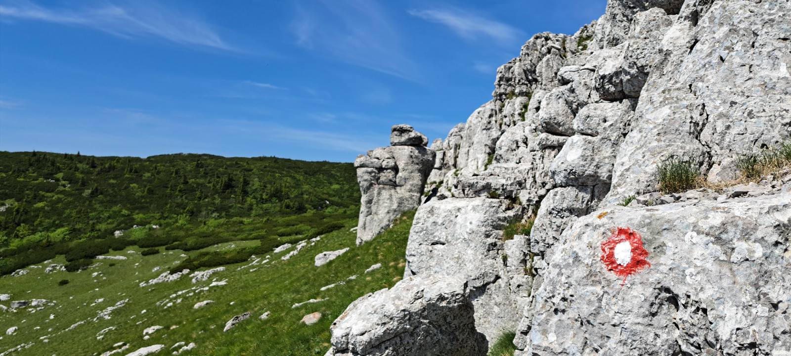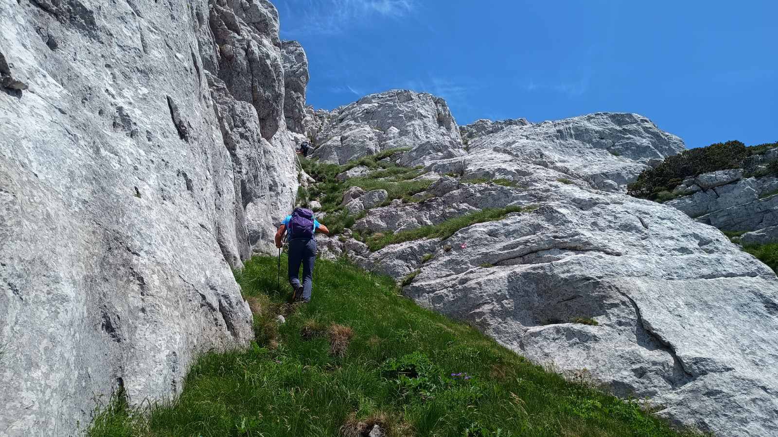 Kada se pređe livada, slijedi najopasniji dio puta, a to je pentranje uz stijene. Postoje dvije staze, jedna lakša i duža koja vijuga između stijena i ona teža, gdje postoji sajla koja olakšava okomito penjanje uz liticu, s tim da se ipak mora upotrijebiti veća fizička snaga, pa se ne preporučuje slabijim planinarima- objašnjava Šadić.