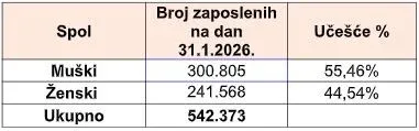 Kako su saopćili, broj zaposlenih prema prebivalištu zaposlenika zaključno s 31. januarom ove godine iznosio je 542.373. Više podataka o broju zaposlenih prema prebivalištu zaposlenika i sjedištu poslodavaca dostupno je ovdje.