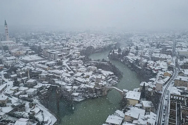 Jutarnje pahulje donijele su Mostaru prizor koji se u ovom hercegovačkom gradu viđa veoma rijetko. Snijeg je tokom noći i ranih jutarnjih sati zabijelio ulice, krovove i automobile, dok je Stari most pod bijelim pokrivačem dobio izgled koji je mnoge podsjetio na razglednice iz hladnijih krajeva Evrope.
