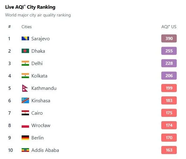 Indeks kvaliteta zraka (US AQI) iznosi 359, što zrak svrstava u kategoriju opasnog po zdravlje, s ozbiljnim rizicima za cjelokupno stanovništvo.