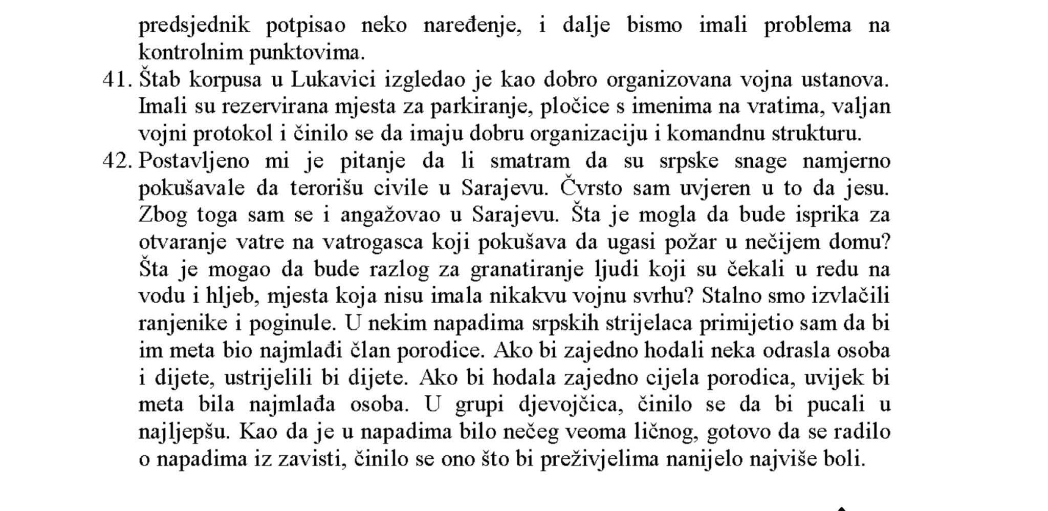 Ovi navodi su sastavni dio zvaničnih sudskih spisa Međunarodnog krivičnog suda za bivšu Jugoslaviju i predstavljaju dokumentovano svjedočenje dato pod zakletvom. Objavljivanje i ponovno aktueliziranje ovakvih dokumenata ponovo otvara pitanja odgovornosti, negiranja zločina i političkih narativa o opsadi Sarajeva, temi koja i dalje ostaje jedna od najosjetljivijih u odnosima u regiji.