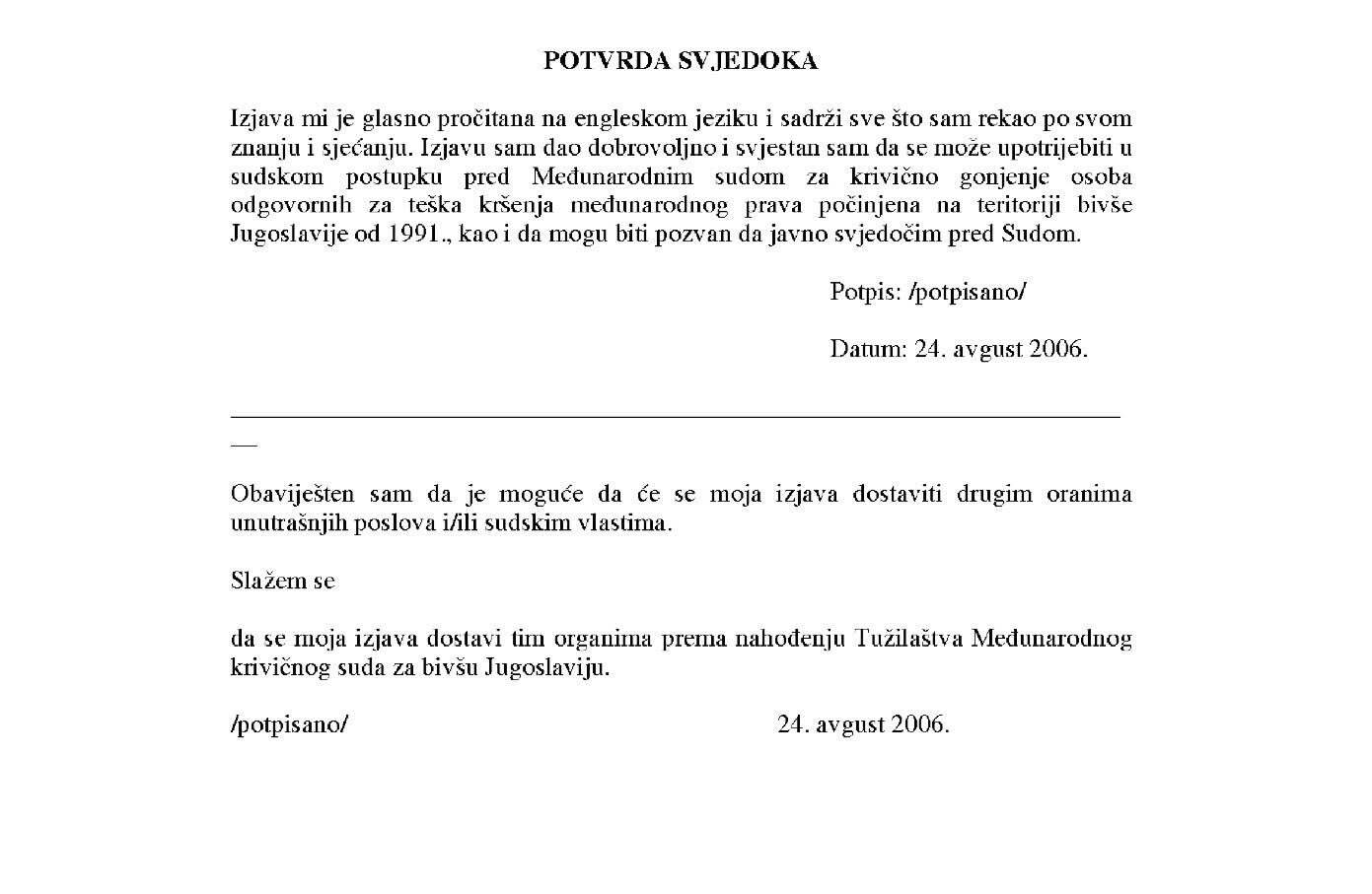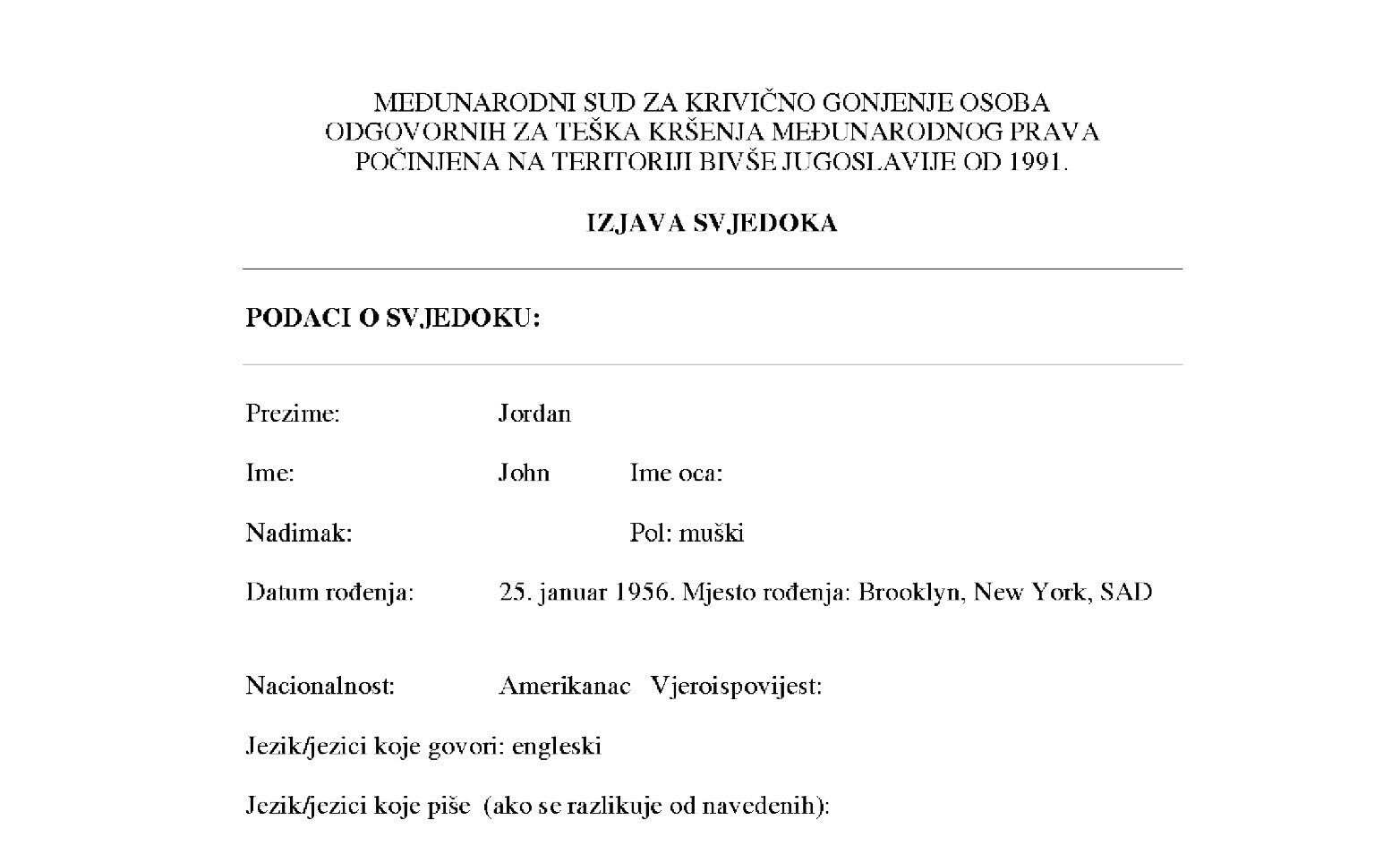 Međutim, službeni dokumenti Međunarodnog krivičnog suda za bivšu Jugoslaviju (MKSJ) iz Haga pokazuju suprotno. Riječ je o dokumentu numerisanom 0603-2373–0603-2383, nastalom tokom zvaničnih saslušanja održanih 22., 23. i 24. augusta 2006. godine, u okviru svjedočenja američkog državljanina Johna Jordana.