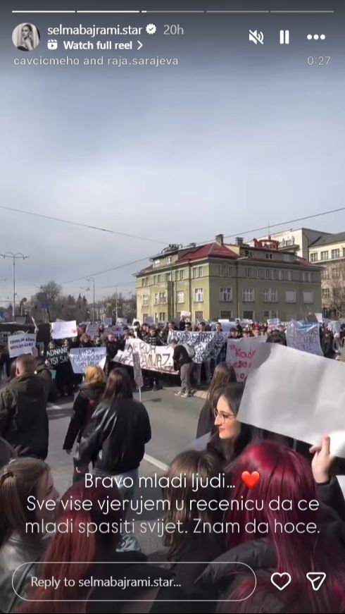 Naime, Selma je javno podržala proteste sarajevskih studenata i srednjoškolaca koji su izašli na ulice tražeći pravdu i odgovornost nakon tragične nesreće u kojoj je život izgubio Erdoan Morankić.