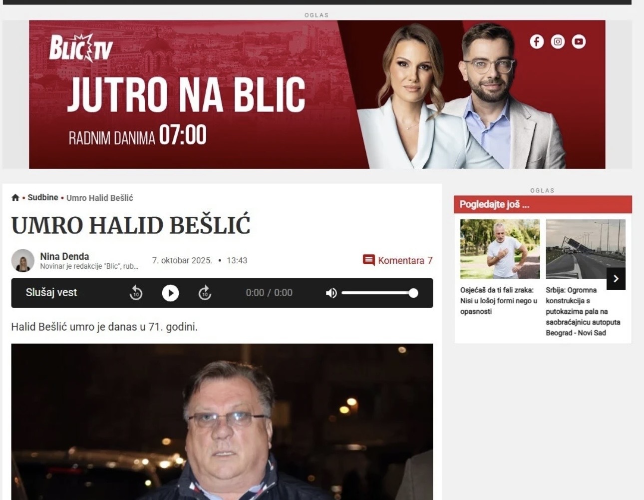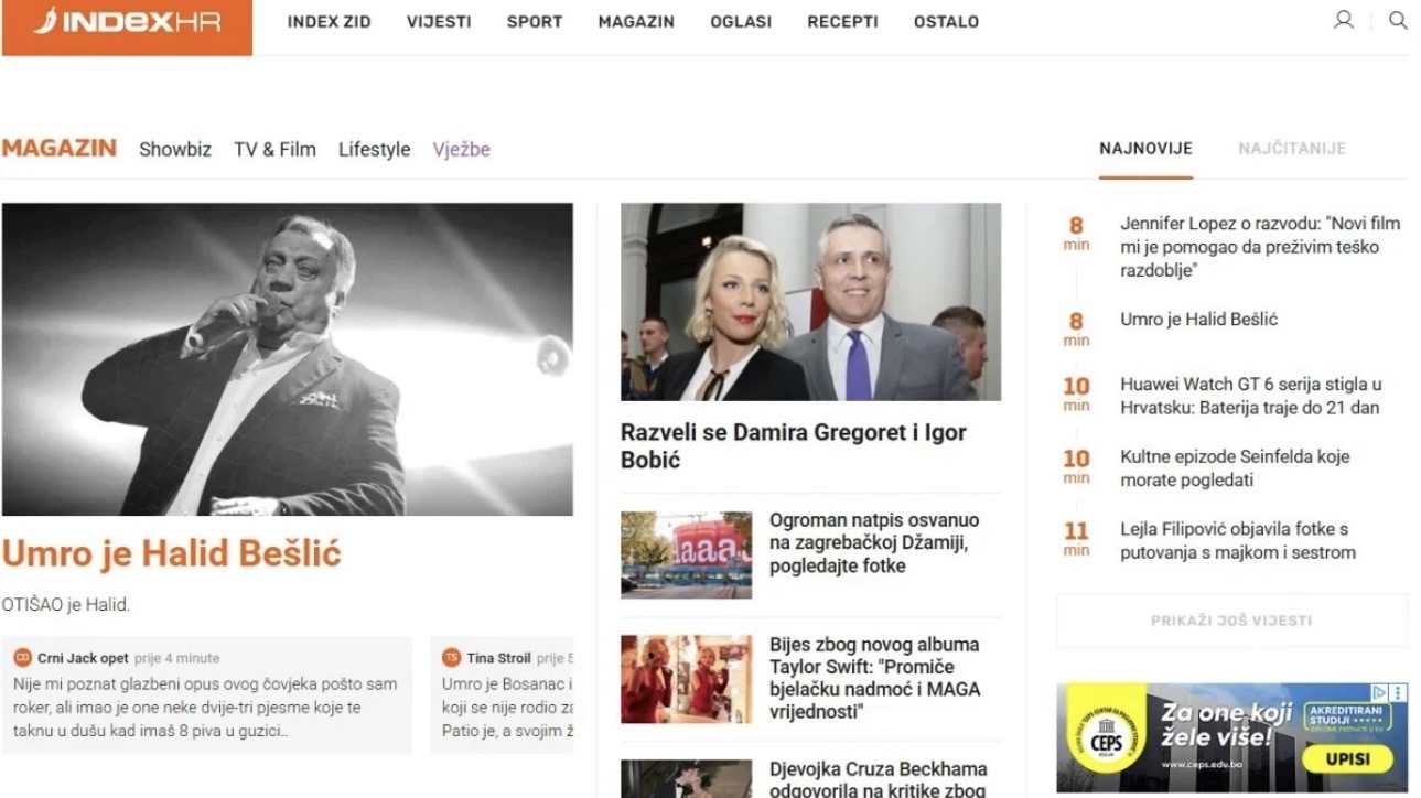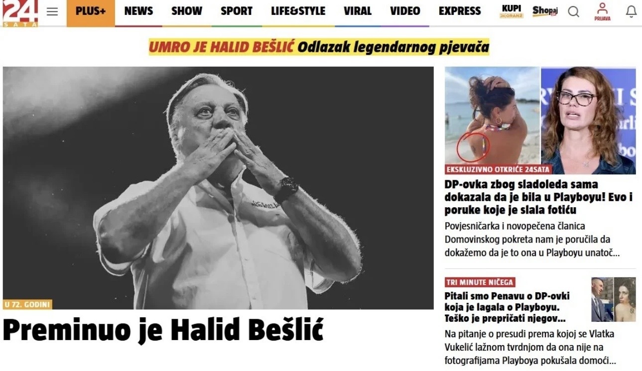 Smrt Halida Bešlića glavna vijest u svim medijima
