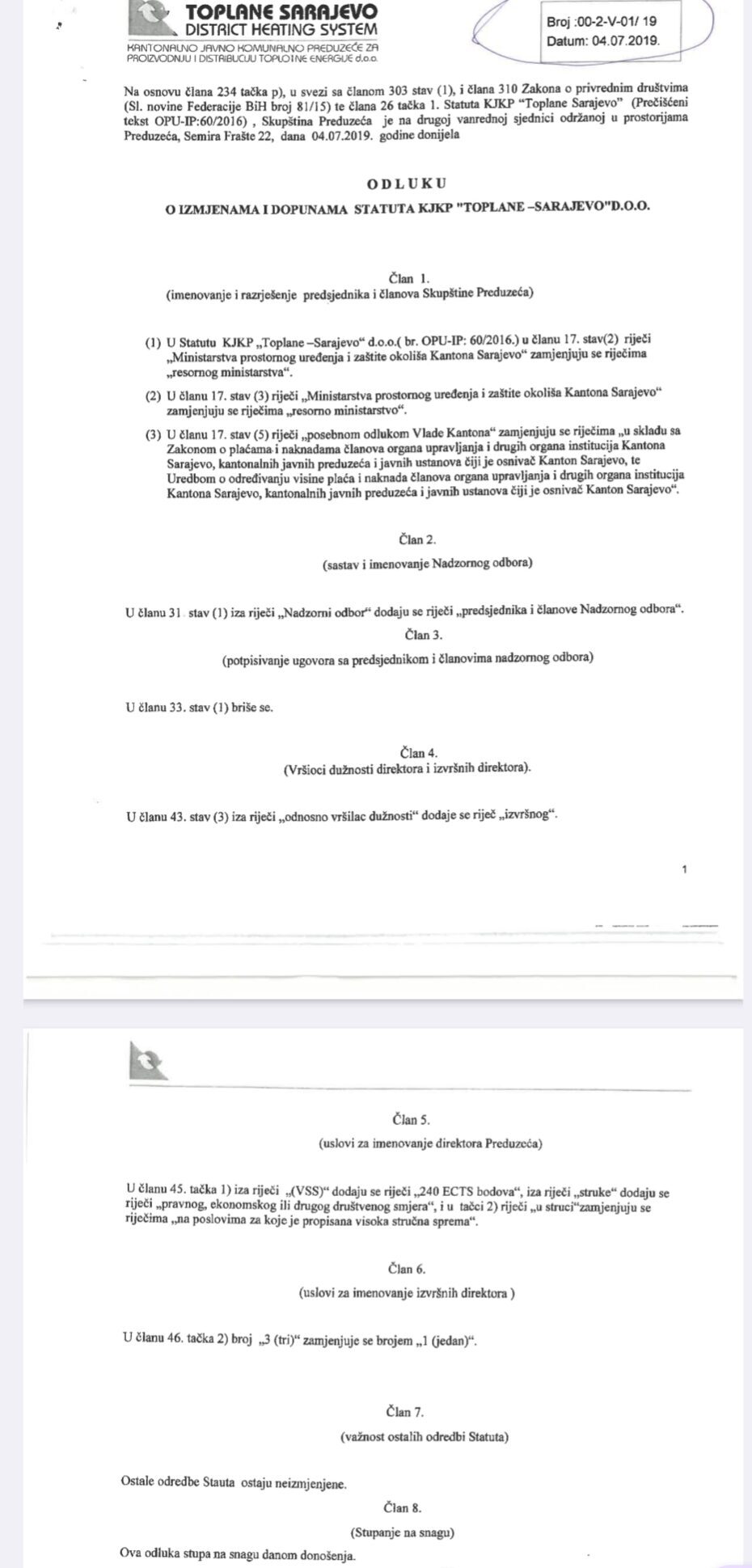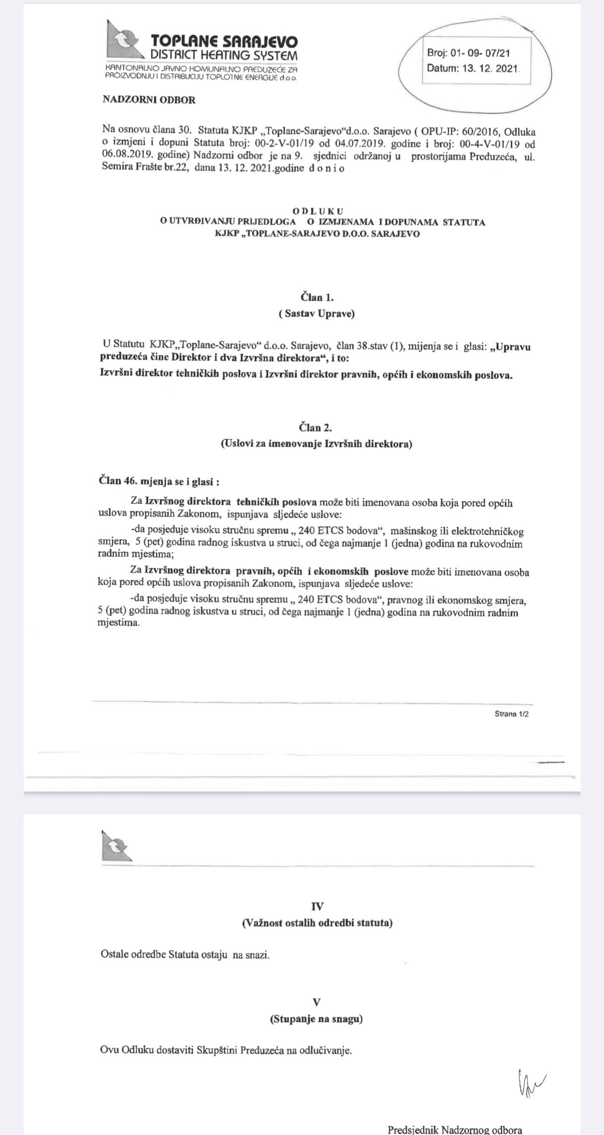Statut preduzeća, prema informacijama do kojih je etto.ba došao , predviđa da kandidat za direktorsku poziciju mora imati visoku stručnu spremu sa 240 ECTS bodova. Bez dodatka diplomi, postavlja se pitanje da li je imenovani uopće ispunjavao taj uslov.