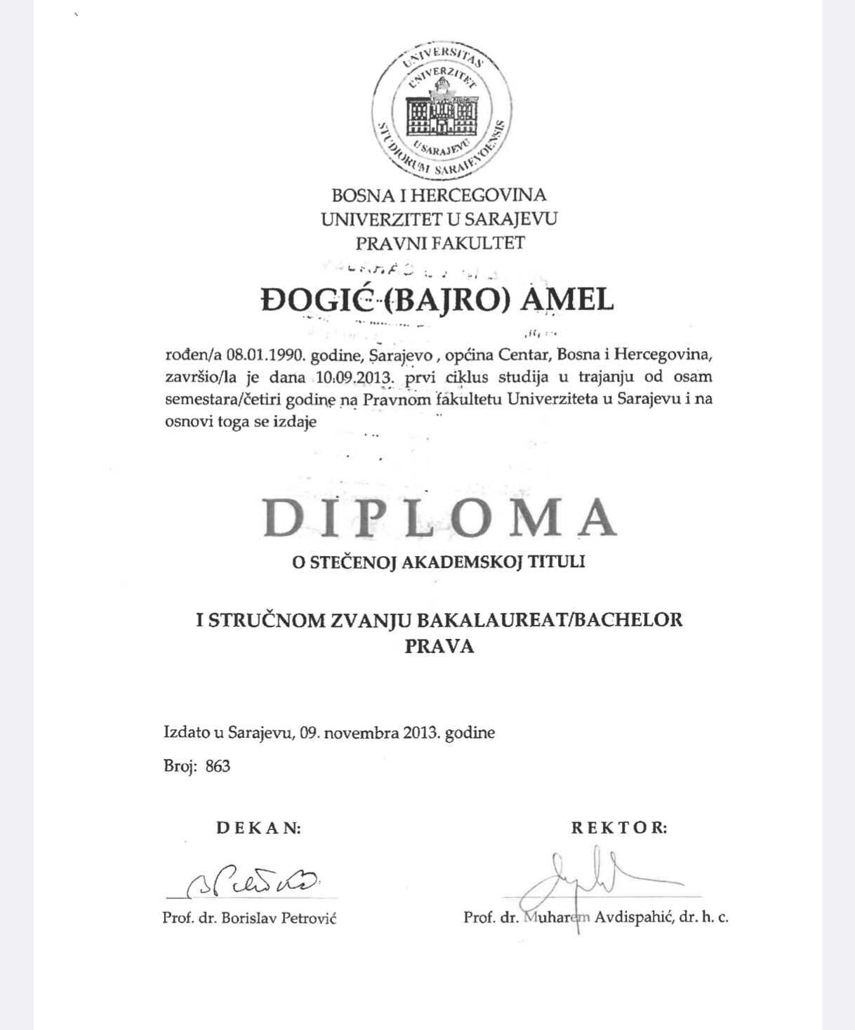 Još ozbiljnije dileme otvaraju se u vezi sa stručnim zvanjem. U dokumentima Nadzornog odbora, prilikom donošenja odluka o imenovanju, Đogić se navodi kao „diplomirani pravnik“, iako je, prema dostavljenoj diplomi, stekao zvanje bakalaureata/bachelor prava. Ta razlika nije samo terminološka – riječ je o različitim nivoima obrazovanja, što može imati direktne posljedice po zakonitost imenovanja, što otvara pitanje usklađenosti formalnih kvalifikacija sa uslovima propisanim statutom preduzeća.
