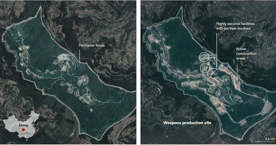 U Zitongu, novi bunkeri i strukture mogli bi se koristiti za testiranje konvencionalnih eksploziva visokog prinosa, potrebnih za stvaranje uslova za lančanu reakciju u nuklearnim materijalima. Hui Zhang, fizičar sa Univerziteta Harvard koji je pregledao nalaze, kaže da satelitski snimci pružaju ograničene informacije. „Ne znamo koliko je bojevih glava proizvedeno, ali vidimo širenje postrojenja“, kaže on.