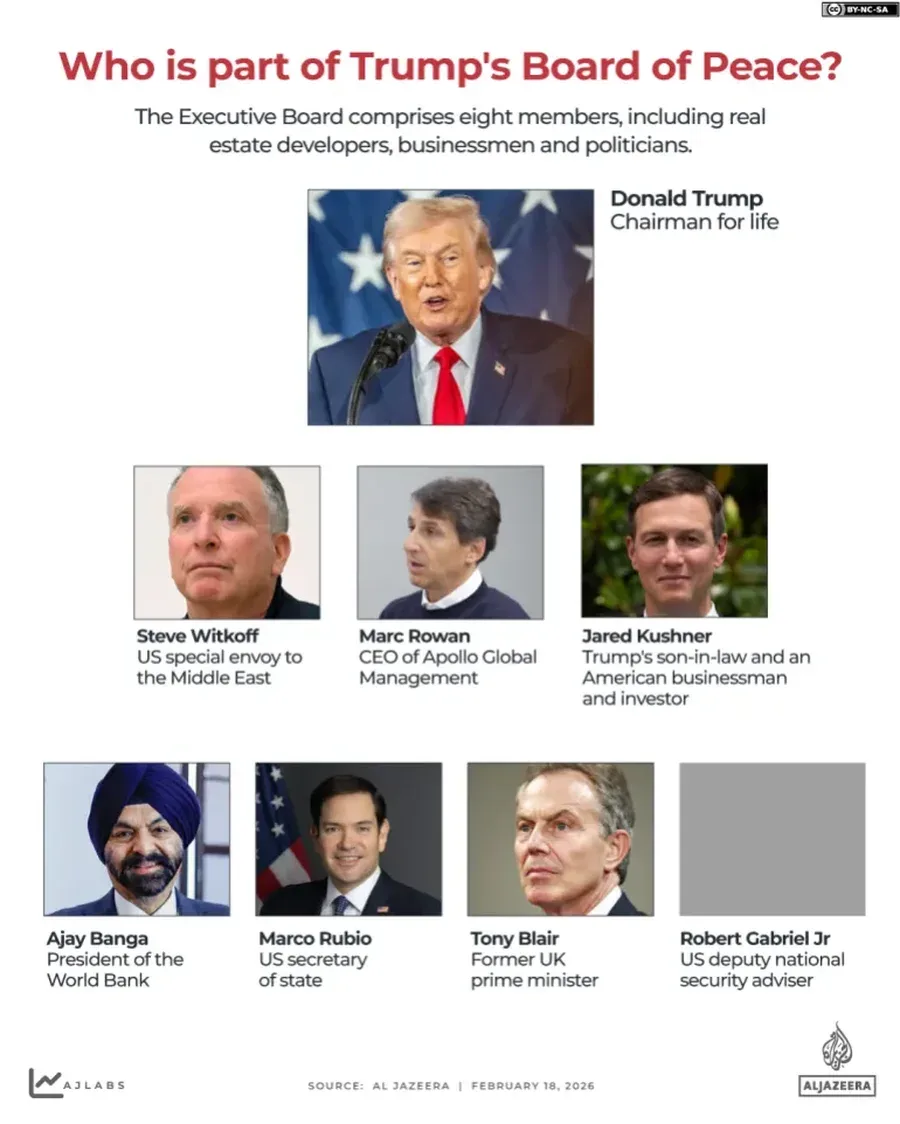 Odbor za mir je formalno pokrenut prošlog mjeseca na Svjetskom ekonomskom forumu u Davosu, u Švicarskoj. Jared Kushner, Trumpov zet i član izvršnog odbora, također je predstavio detaljnu viziju obnove Gaze, uključujući odmarališta na plaži i nebodere, koju su palestinske zagovaračke grupe kritizirale kao "imperijalističku".