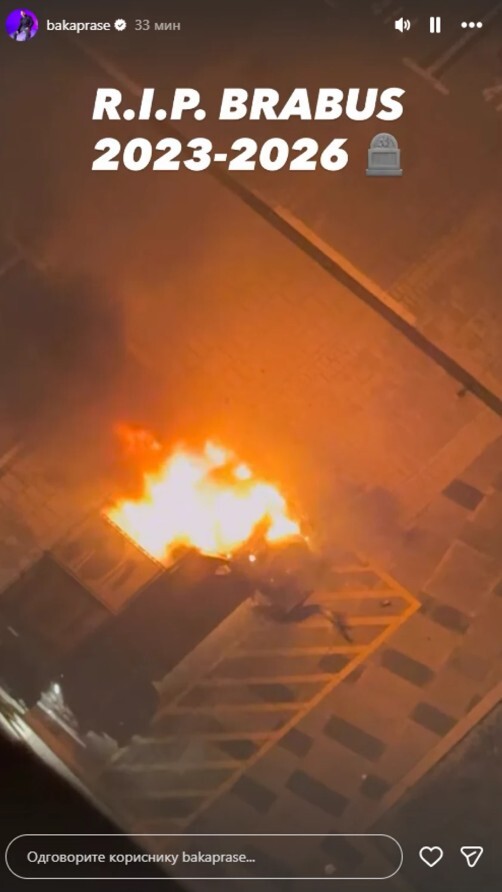 Naime, Baka Prase je na Instagramu podijelio snimak sa terase, dok je snimao svoj zapaljeni automobil.