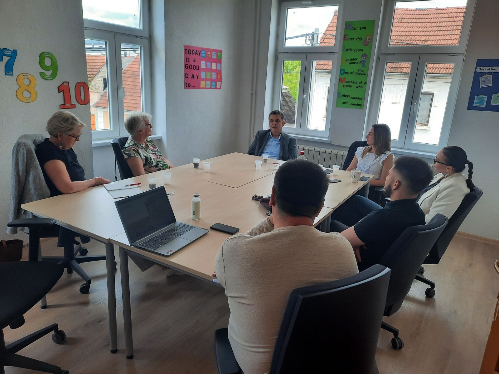 U novim prostorijama Centra za izgradnju mira (CIM) na prvom spratu Doma mladih domaćinima iz Centra i gostima iz Ambasade pridružio se i općinski načelnik Faris Hasanbegović. Ugodna atmosfera i prijatni razgovori dominirali su na ovom poslovnom druženju.